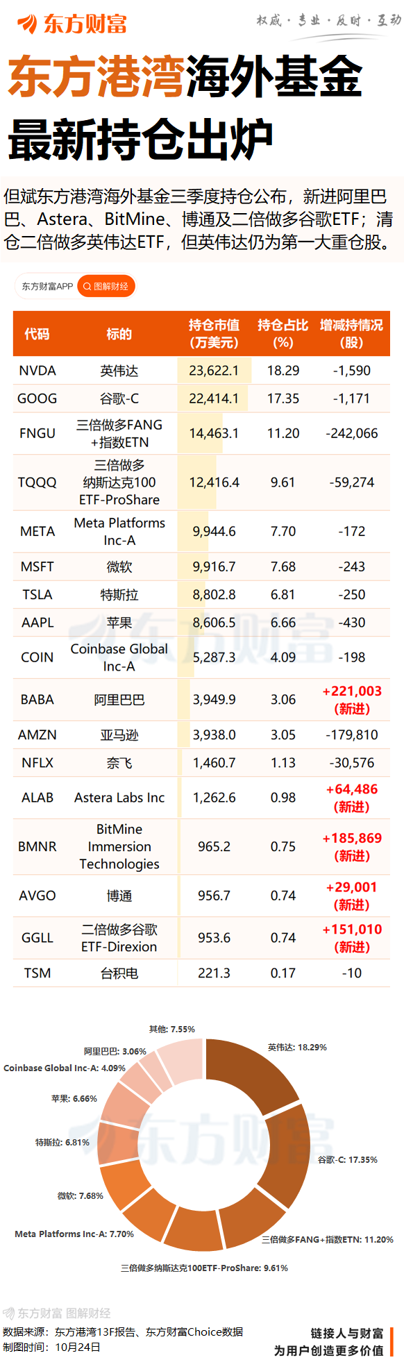但斌在三季度新买入5股,其中大举买入阿里巴巴,英伟达、谷歌依然位列前两大重仓股,并强化AI产业链布局,新进了两家半导体XM交易官网公司——博通、Astera Labs,同时大幅减持亚马逊和奈飞,清仓了2倍做多英伟达ETF。