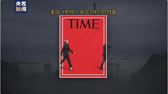 拜登宣布退出总统竞选后,美国《时代》杂志21日推出了新的封面图,其中显示拜登逐渐从画中走出,只留下一个背影,而哈里斯正走入画中。同时,该杂志还附上了其于6月28日,也就是第一次总统辩论的第二天发布的电子版封面。图中,拜登走向画面边缘,身后有“恐慌”字样。