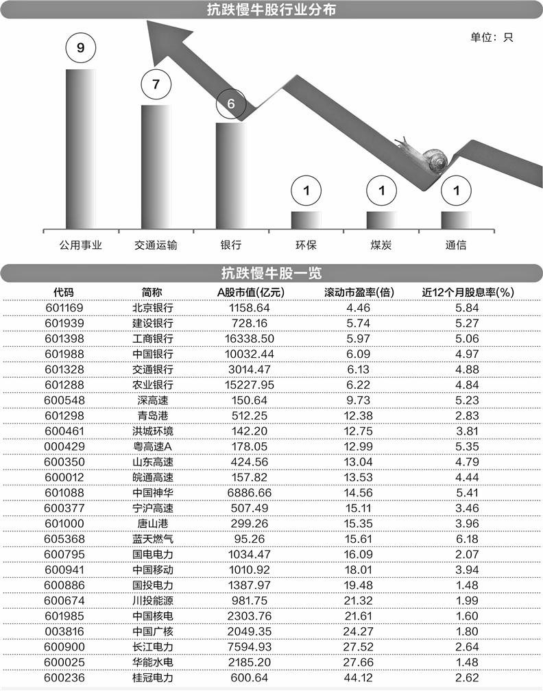 一是上述25股分布于6个行业,分别是公用事业、交通运输、银行、环保、煤炭、通信。其中公用事业入围股票数量最多,达到9只。