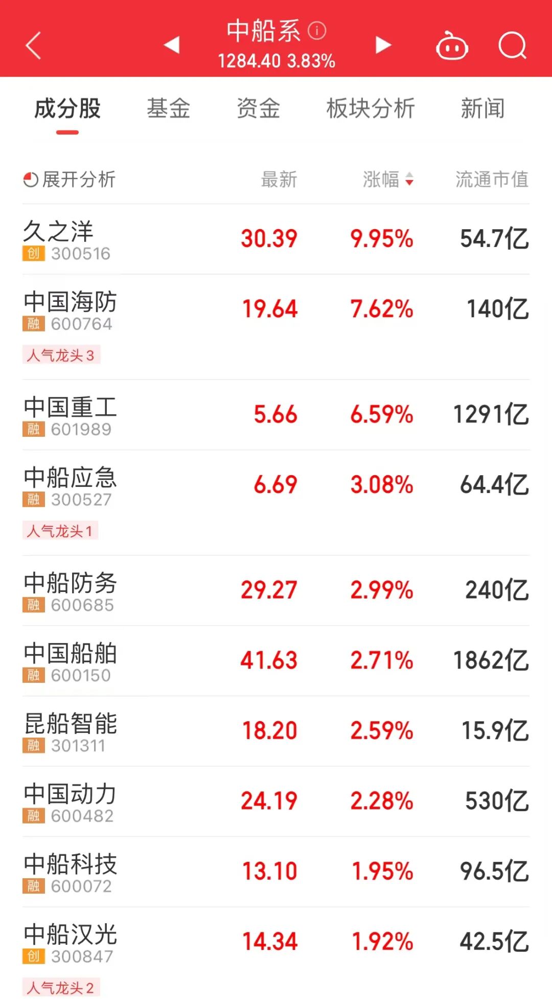 A股船舶板块震荡走强,“中船系”集体走高。中科海讯20cm涨停,中国海防涨超7%,中国重工、中船防务、中国船舶等多股涨幅居前。