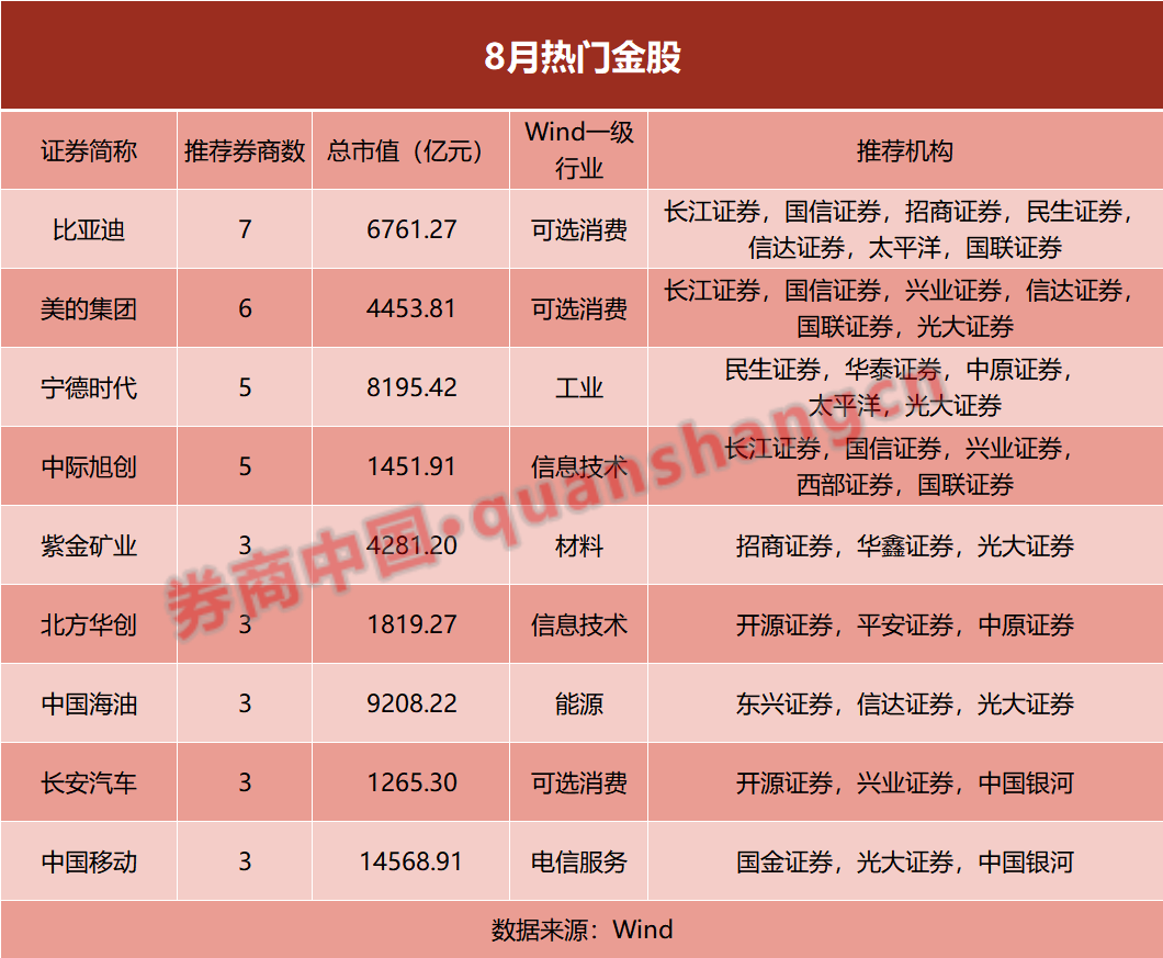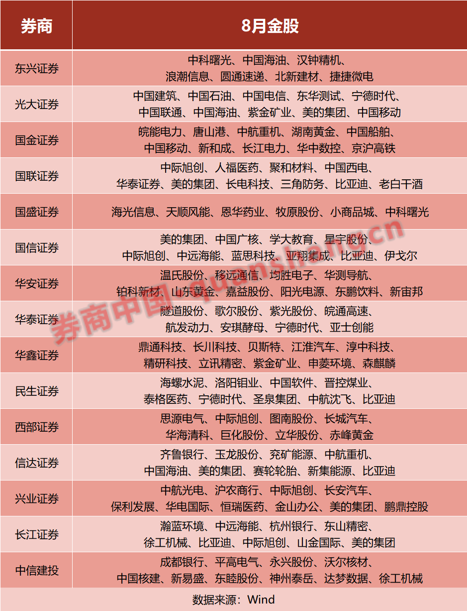 进入8月,新一期券商金股陆续出炉。