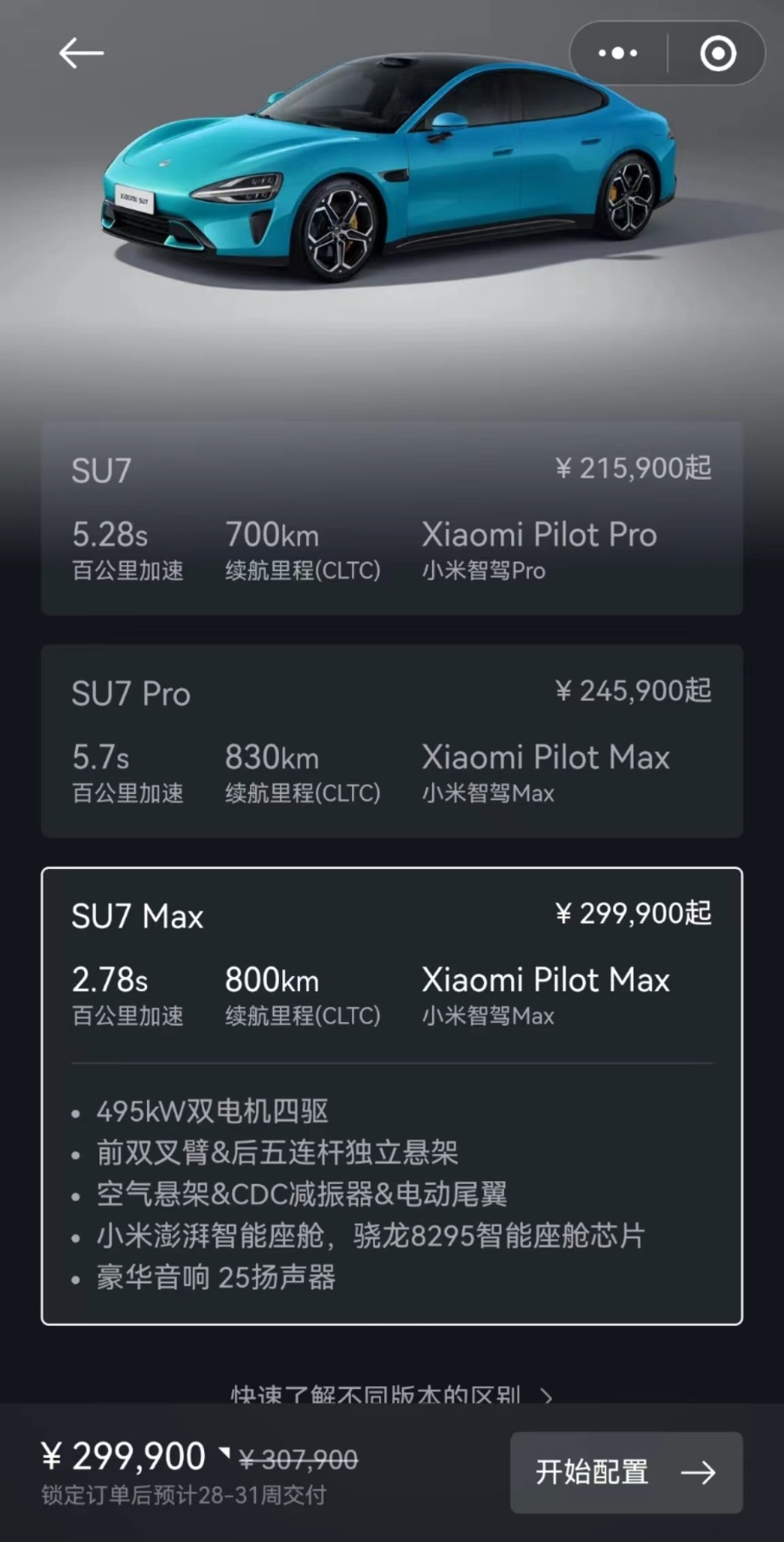 当下,小米汽车正在加速交付车辆。《每日经济新闻》记者通过小米汽车APP看到,目前小米汽车下订后交付等待时间较长,其中三个版本的交付时间都超过19周。其中,SU7锁单后预计26周~29周交付、SU7 Pro交付时长为19周~22周、SU7 MAX交付时长则为28周~31周。