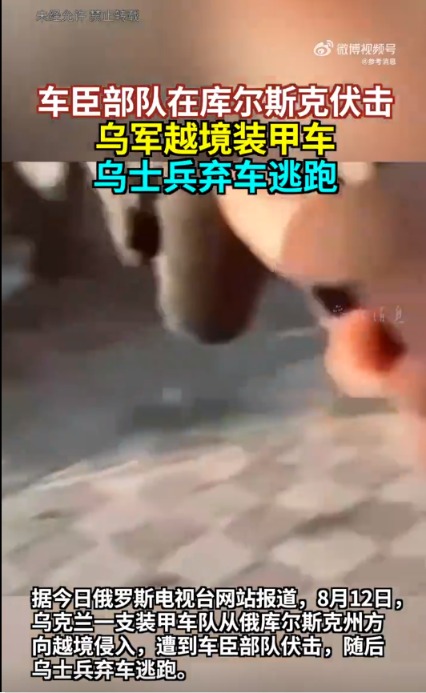 另据参考消息援引今日俄罗斯电视台网站报道,8月12日,乌克兰一支装甲车队从俄库尔斯克州方向越境侵入,遭到车臣部队伏击,随后乌士兵弃车逃跑。车臣部队截获了一辆状态完好的BTR-4装甲车,并将其开到了后方。