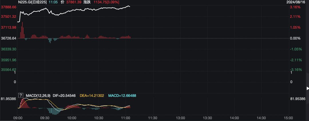 在隔夜美股大涨后,今天上午日韩股市再度强劲上涨,其中日本日经225指数盘中涨超1100点,涨幅超3%。