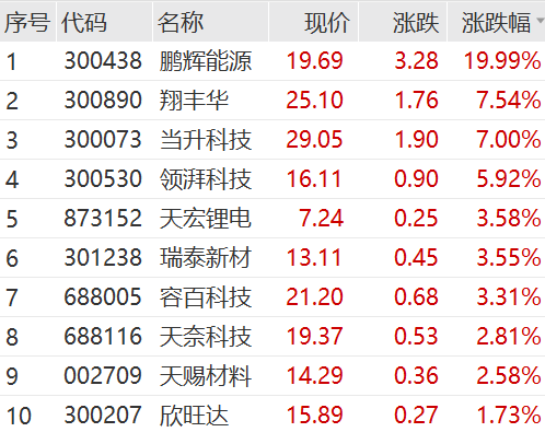 上午动力电池盘中拉升,固态电池、无线充电、锂矿、锂电池等概念先后大涨。鹏辉能源、田中精机20CM涨停,翔丰华、当升科技等跟涨。