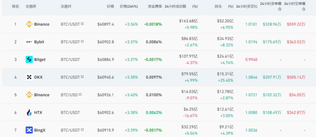 从整个加密货币来看,虽然表现没有那么强劲,但比特币这个最大的品种却出现了明显异动。数据显示,比特币各大品种一度涨幅都超过了3%,重回6万美元以上水平,随后涨幅有所回落。