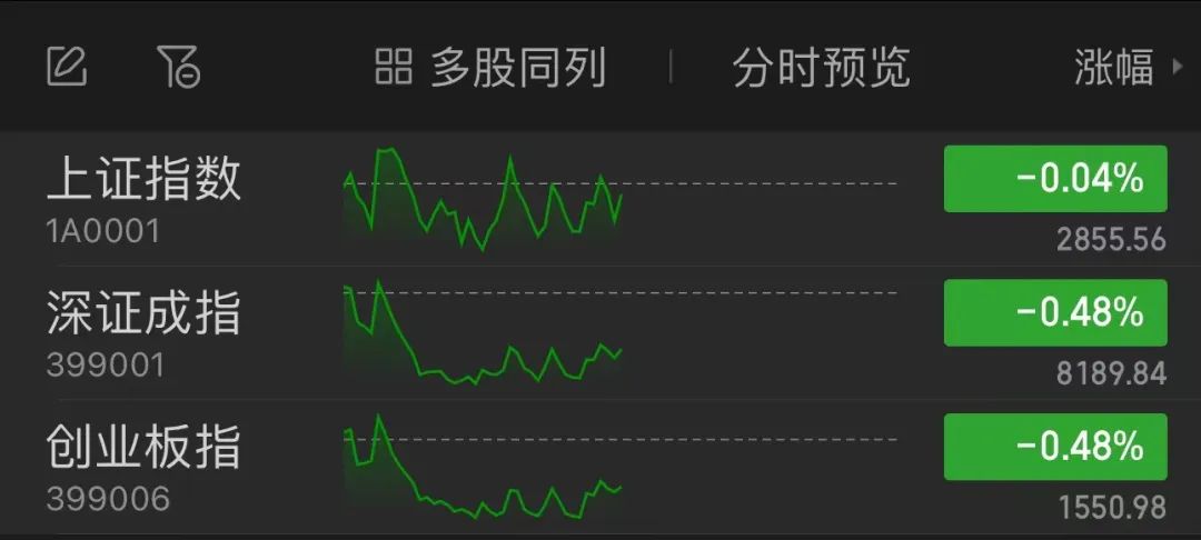 今日三大指数开盘涨跌不一,沪指早间窄幅震荡,深证成指、创业板指走势较弱。截至午间收盘,沪指跌0.04%,深证成指跌0.48%,创业板指跌0.48%。