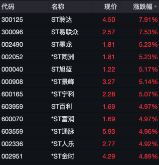 ST板块逆势活跃,*ST景峰、ST百利、*ST富润、*ST通脉等10余股涨停。
