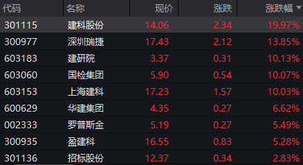 国检集团、建科股份、上海建科等房屋检测概念股大涨。消息面上,住建部副部长董建国近日表示,研究建立房屋体检、房屋养老金、房屋保险这三项制度,构建全生命周期的房屋安全管理长效机制,上海等22个城市目前正开展试点。