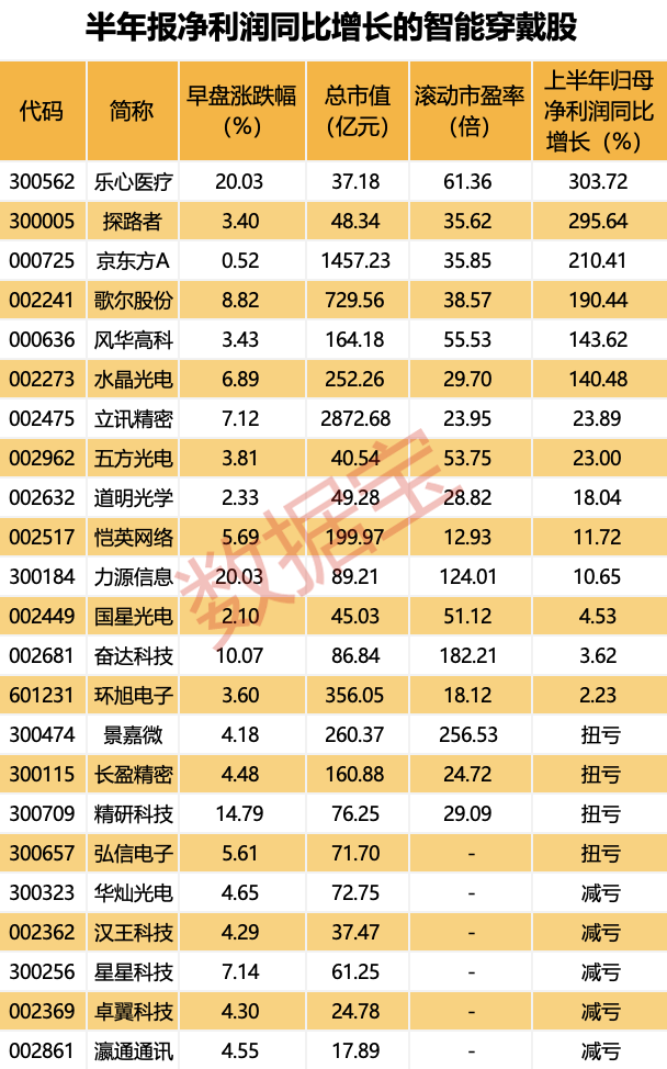 早盘走势喜人,智能穿戴板块表现亮眼。
