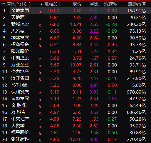 今日上午,近期低迷的地产股也活跃起来,金地集团涨停,保利发展大涨超5%。