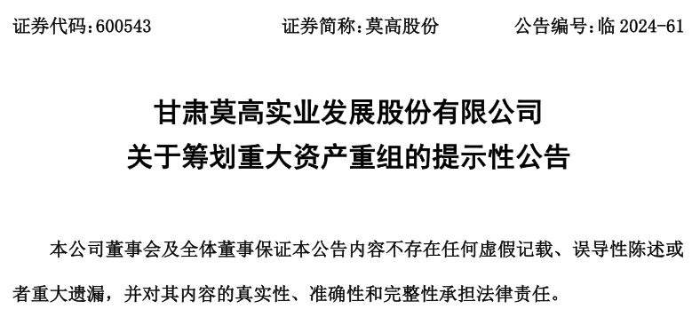 股价先异动涨停,当晚便放出并购资产的消息,莫高股份正在运作的资产重组可谓充满“学问”。