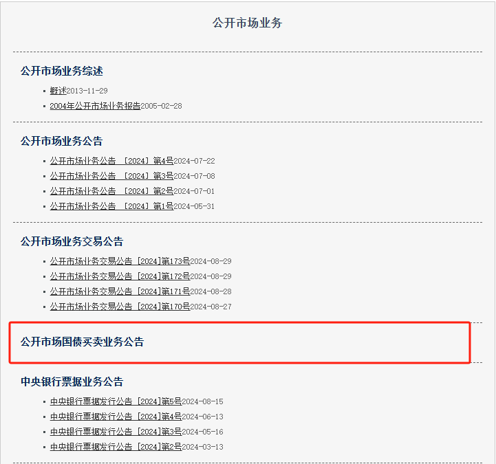 8月28日,中国人民银行官网“公开市场业务”专题页面上线“公开市场国债买卖业务公告”栏目。此次在官网栏目更新,显示央行已为公开市场国债买卖业务做好准备,再次释放其将在公开市场开展国债买卖操作的信号。