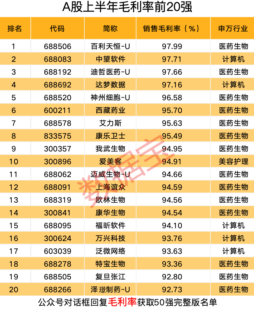 创新医药股登顶毛利率榜首