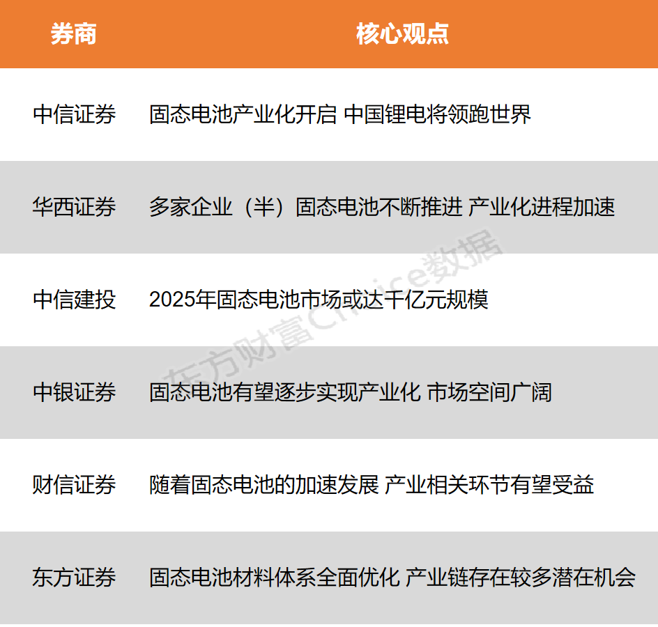 东方证券:固态电池材料体系全面优化 产业链存在较多潜在机会