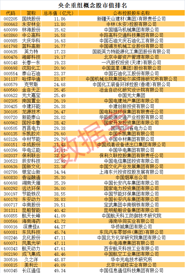 据此,数据宝梳理了具有较大重组潜力的央企上市公司以及地方国资委控股的国企小市值股票,以飨读者。