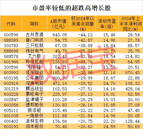 据数据宝统计,这些滚动市盈率不足30倍的公司当中,上半年净利润增速超20%,且9月9日收盘价较年内高点回撤20%以上的公司有18家。
