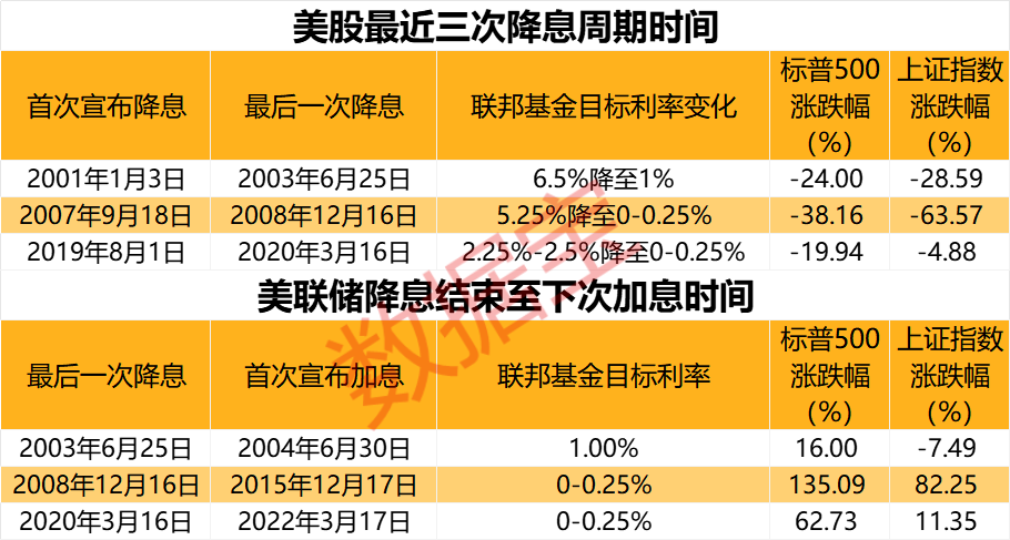 华金证券研报此前认为,后续若美联储降息则可能是经济衰退下的纾困型降息,短期内对A股影响可能偏正面。一是短期内国内经济修复预期上升:首先历史经验上美联储降息前A股受基本面驱动相对偏强;其次政治局会议定调积极,经济修复预期可能上升。二是降息前后流动性预期宽松:首先历史经验上美联储降息美元指数可能走弱,对国内宽松的掣肘下降;其次降息周期下外资可能流入。