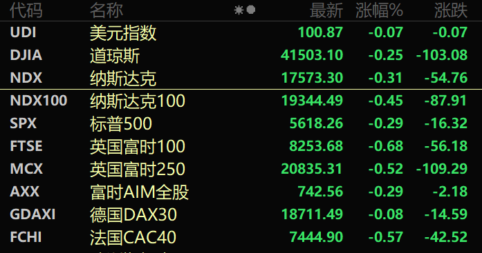 美股三大股指集体收跌