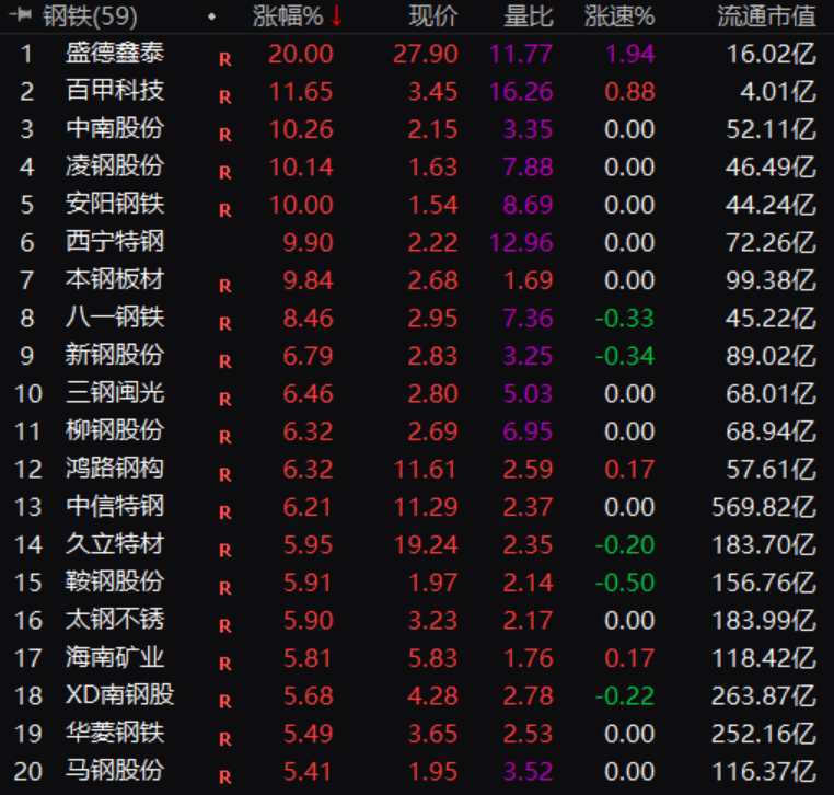 钢铁、银行等权重表现也十分给力,给予指数极大支撑。