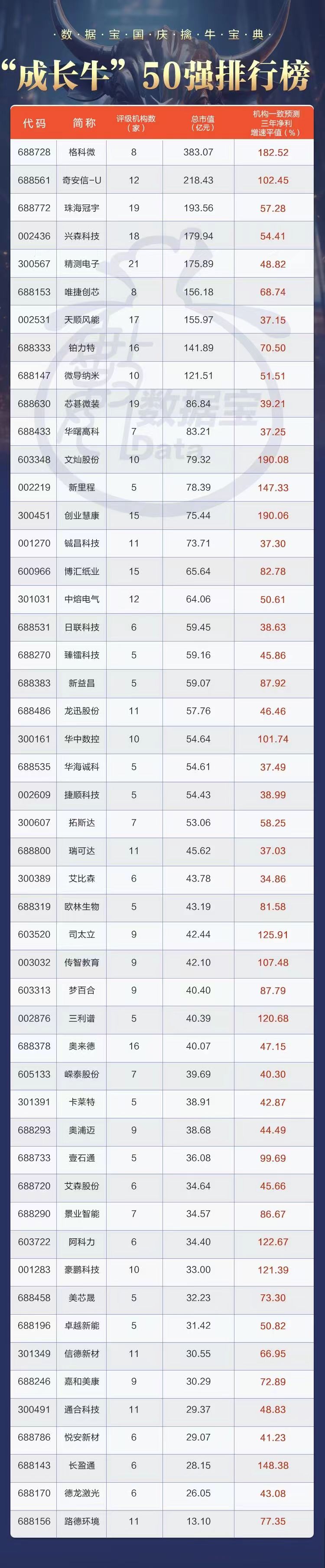 牛市优选进攻品种,成长风格或将重回风口。本文为数据宝国庆特别策划《擒牛宝典》第二篇——成长牛,50只超跌高成长牛股揭晓。