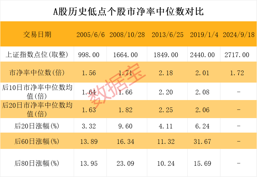 从当前来看,9月18日,上证指数下探2717点附近,当日市净率中位数1.72倍,自9月19日至30日,市净率中位数的均值为1.87倍,较9月18日上升不到10%,上升幅度低于历史低点。