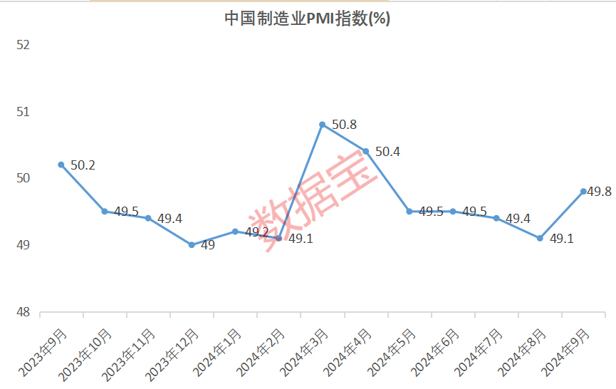 国家统计局数据显示,9月份制造业采购经理指数(PMI)为49.8%,环比上升0.7个百分点,制造业景气度明显回升。其中,生产指数为51.2%,环比上升1.4个百分点,表明制造业企业生产活动有所加快;新订单指数49.9%,环比上升1个百分点,表明制造业市场需求景气度有所改善。