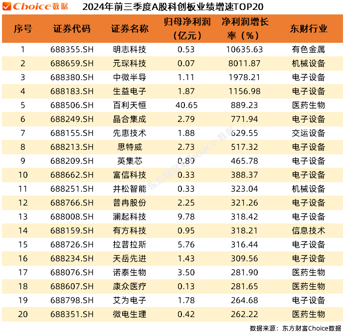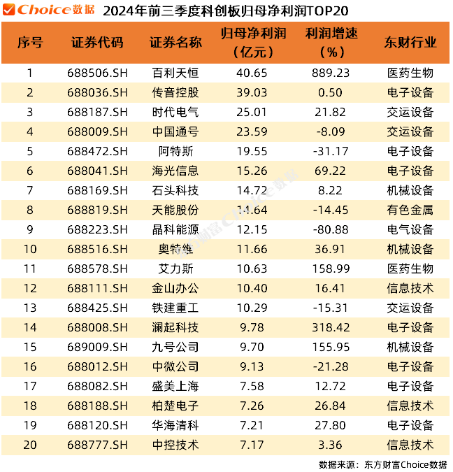 科创板“盈利王”是百利天恒,净利润达到40.65亿元,传音控股、时代电气位居第二、第三。