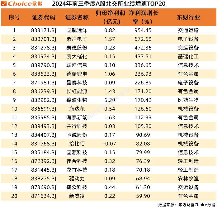 北交所个股中,国航远洋上半年实现归母净利润0.82亿元,净利润同比增速954.45%,位列第一。