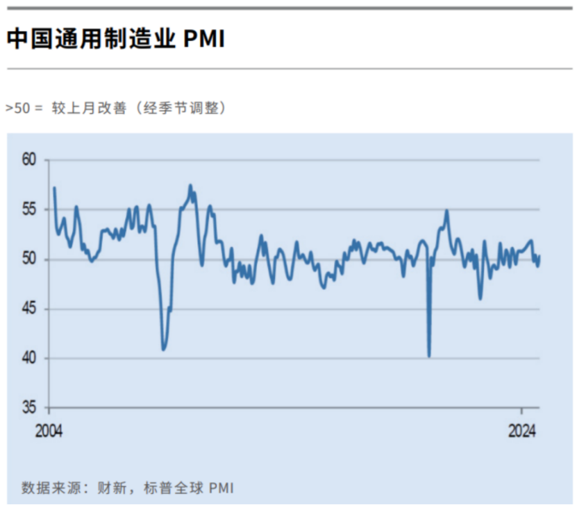 与此同时,中国经济也迎来了向好数据。标普全球今日公布的数据显示,中国10月财新制造业采购经理指数(PMI)录得50.3,较前值49.3明显回升,重新升至荣枯线以上。