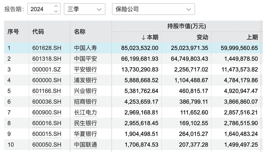 险资在资本市场动作频频。根据上市公司三季报,保险公司持股市值较中报披露数据大幅增加。