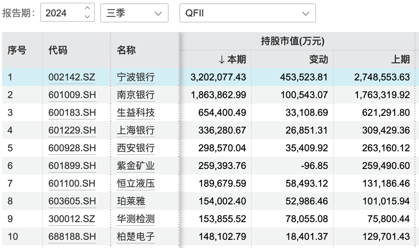 2024年三季报披露收官,机构持股最新动向随之浮出水面。QFII持仓市值高于中报披露的水平;保险资金、社保基金等持仓市值也大幅增加。
