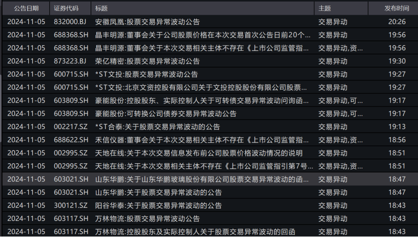 13连板松发股份发布股票交易异常波动暨风险提示公告,公司股票于2024年11月1日、11月4日连续2个交易日收盘价格涨幅偏离值累计超过20%,根据《上海证券交易所交易规则》的相关规定,属于股票交易异常波动情况。公司正在筹划重大资产重组事项,本次重组事项尚需履行必要的内部决策程序,并需经有权监管机构批准后方可正式实施,能否实施尚存在不确定性。