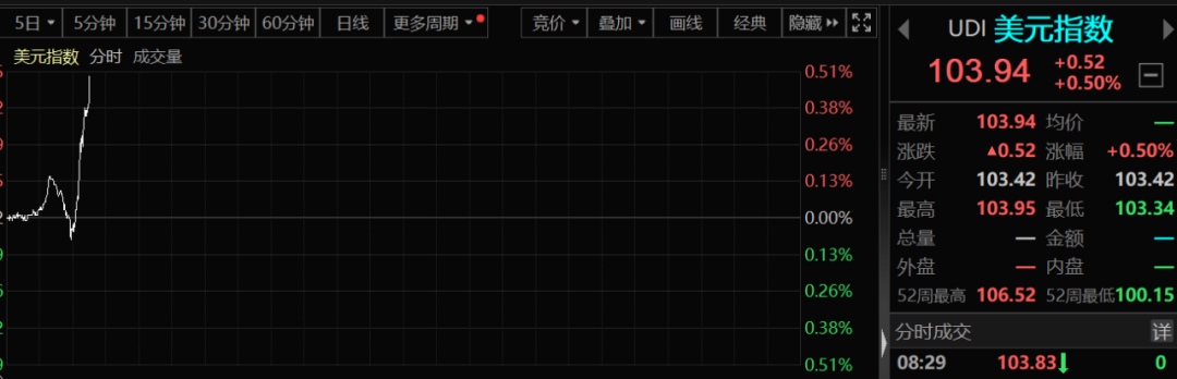 就在刚才,外汇市场巨震。离岸人民币兑美元亚市早盘一度涨至7.0906元,此后又快速回落,最低触及7.1106元,日内波动约200点。此后,人民币跌幅再度加大并下破7.13关口。在此过程当中,美元指数亦是上蹿下跳,该指数早盘一度跌至103.34点,随后快速拉升至103.94点。