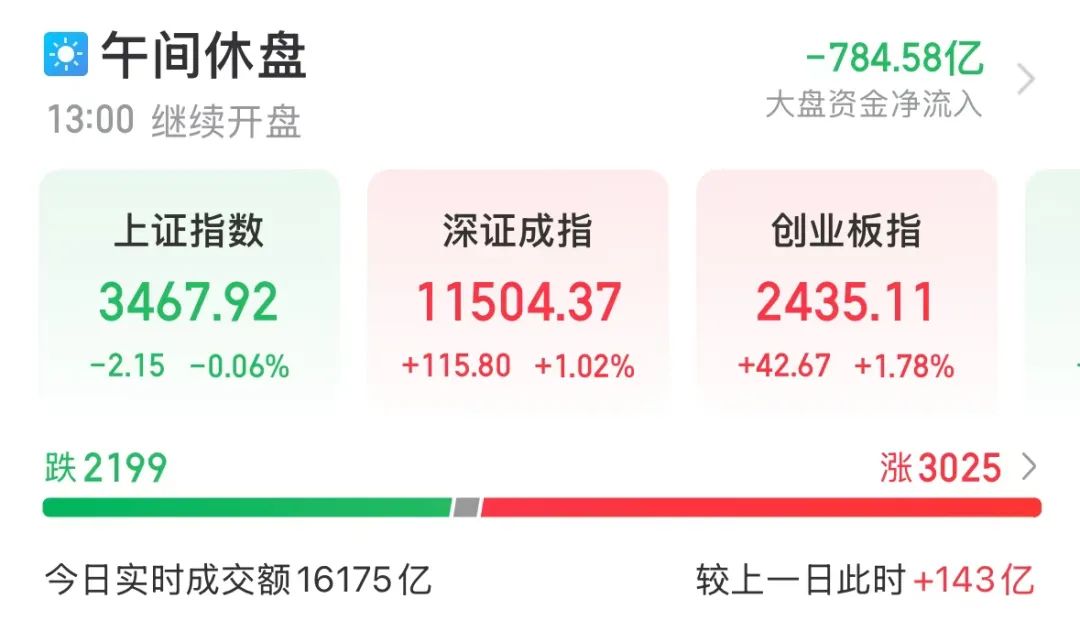 市场早间冲高回落,沪指震荡下行翻绿,深证成指、创业板指涨幅收窄,半导体、军工、保险、软件等方向领跌。