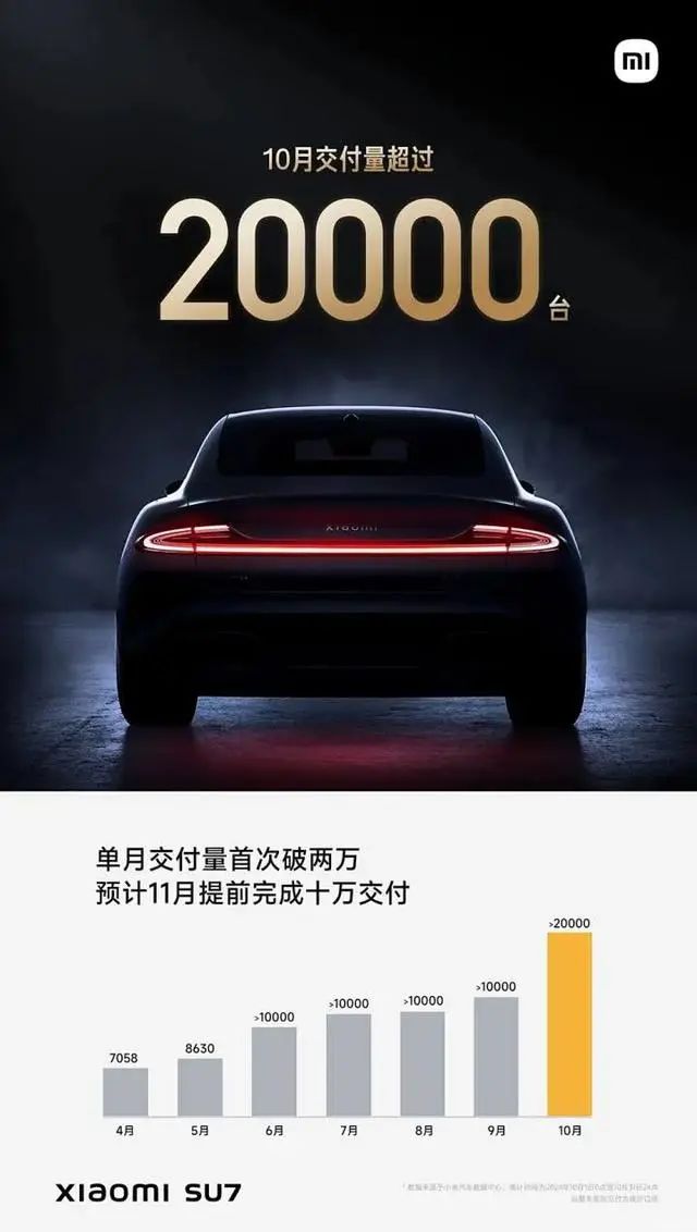 本月,小米SU7交付量超过20000台。这是小米汽车单月交付量首次突破2万台,预计本月将提前完成10万台全年交付目标。从以往来看,小米汽车官方公布的销量情况几乎都未提到具体数据,仅称“破万”。