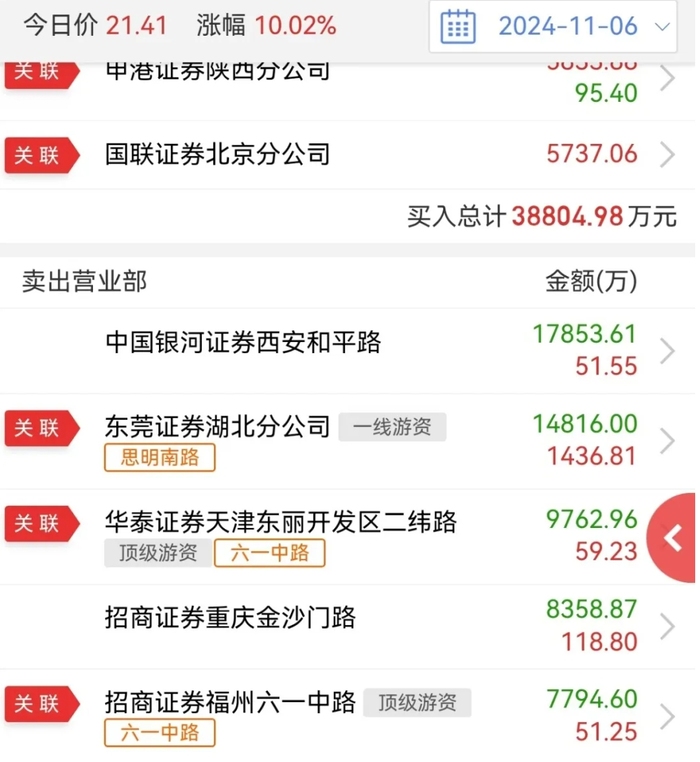 “通过龙虎榜就很容易可以看出,现在涨幅较多的股票龙虎榜席位,都是东方财富的拉萨金融城、东环路、团结路等,这些我们一般称为‘散户大本营’,所以现在最终妖股都是由‘家人们接盘’。”