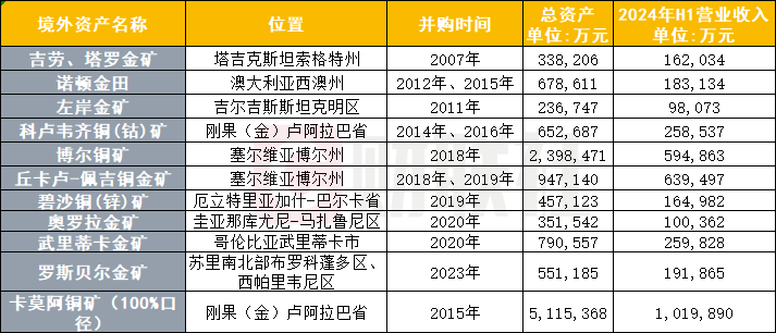 事实上,今年以来,在以金铜为代表的有色金属屡创新高的背景下。紫金矿业仍在接连进行大手笔的海外并购。 具体来看,2024年1月公司与索拉里斯签署股份认购协议,10月发布收购加纳Akyem金矿项目公告,11月发布收购秘鲁LaArena金矿和二期项目公告,所涉及的价格分别约为6.9亿元、 70.71亿元、 17.39亿元,这三个标的的主要矿山位于欠发达国家。 不可否认的是,紫金矿业从福建一隅的上杭县起家,二十余年前,由上杭矿业公司更名为紫金矿业,此后相继在港股和A股上市。正是一系列的国内外并购,让其步入全球头部有色金属矿业公司之列。 不停歇的大手笔并购,也引发投资者关注。今年5月,在紫金矿业举办的2023年度股东大会的现场,有投资者问及在业内对长期铜价一致性看好的情况下,如果公司再去做相关矿山并购时,如何去确定可研价格。 对此,公司董事长陈景河回应,首先公司不会有一个很高的价格,公司内部定的价格还是相对比较保守,“包括现在要打包出来卖的一些资源,肯定是有毛病”,“没毛病,你想随便一天算出来赚多少钱,没有这个可能(会卖),”但是要看到相关项目在公司接管以后,有没有一些原来所有者按照他们之前经营模式没有发现的潜在增量,“这个,就是一个本事”。