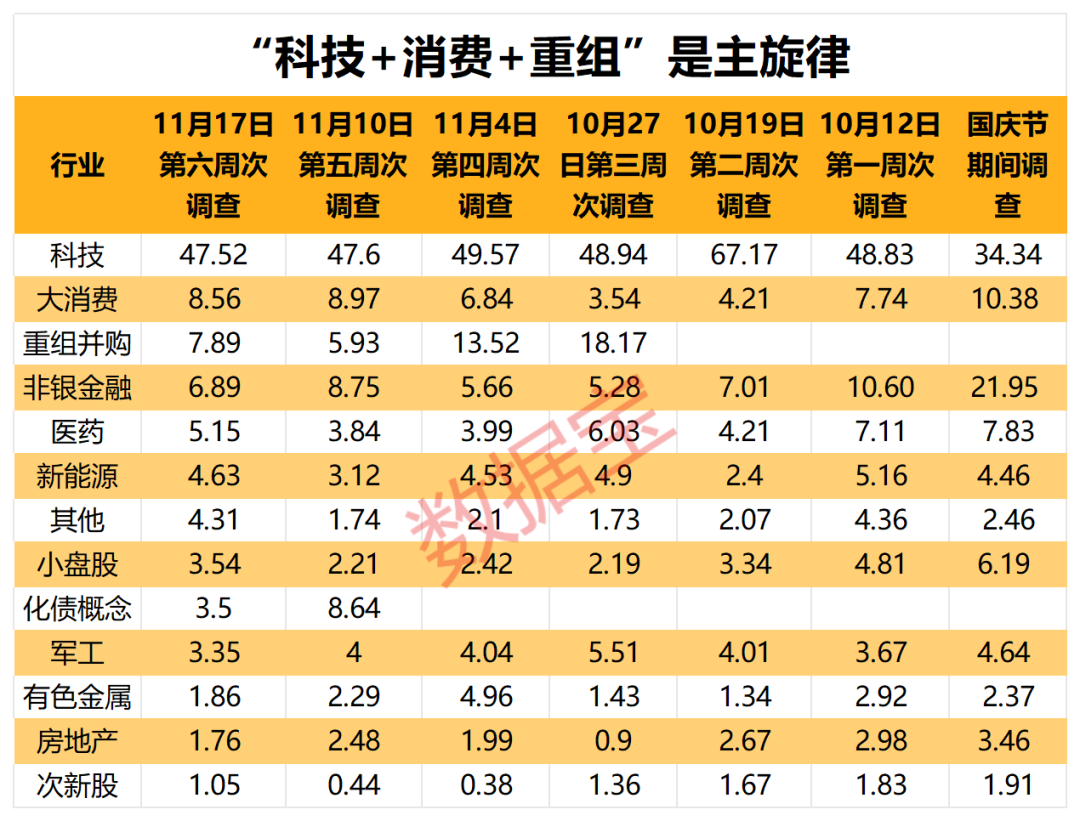 对于接下来看好的板块,受访者仍然坚信科技板块是最强音。此外,大消费和重组概念也是投资者接下来看好的方向。