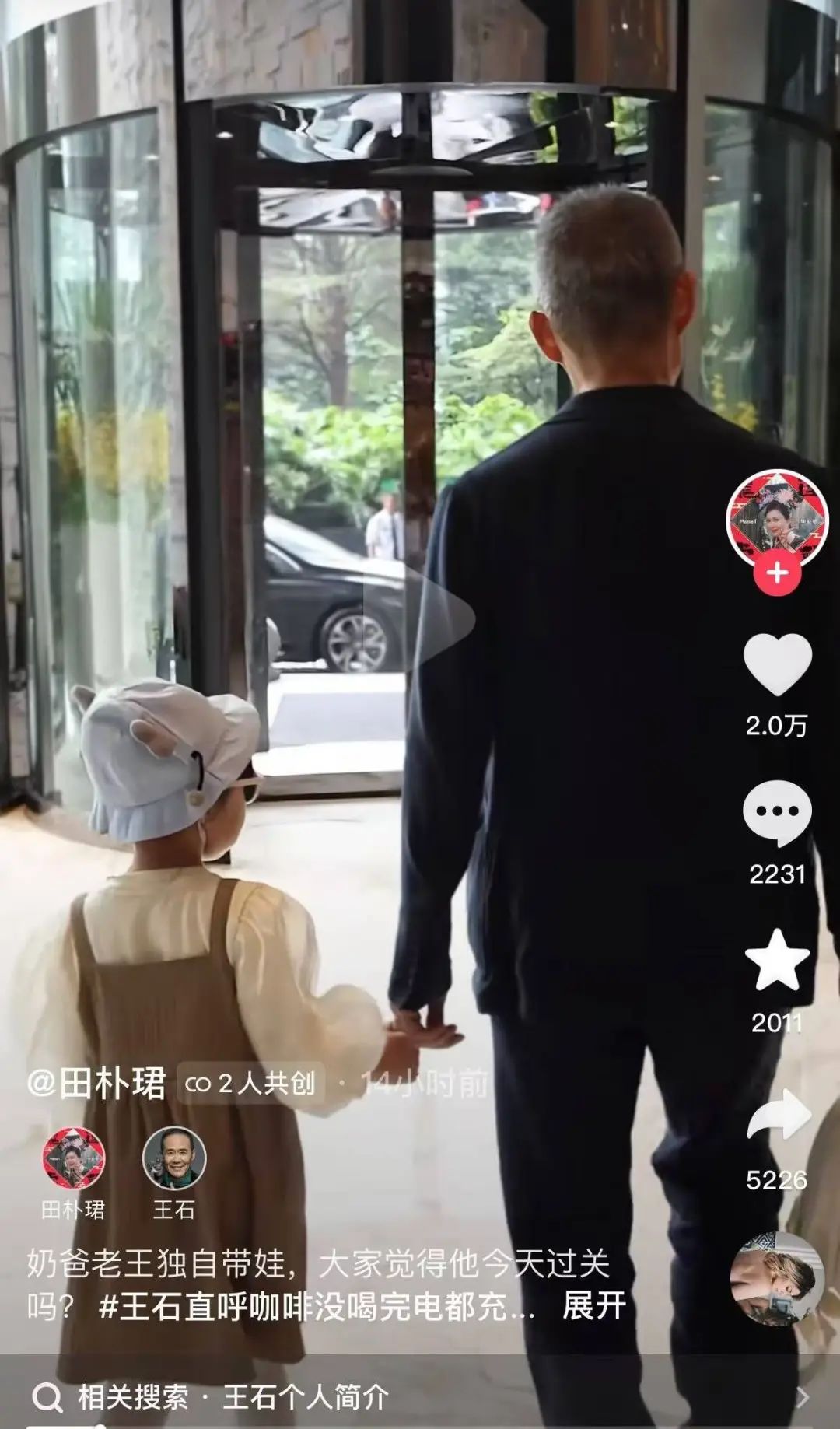 昨日,王石和田朴珺发布了一条共创视频,文案为“奶爸老王独自带娃,大家觉得他今天过关吗?”