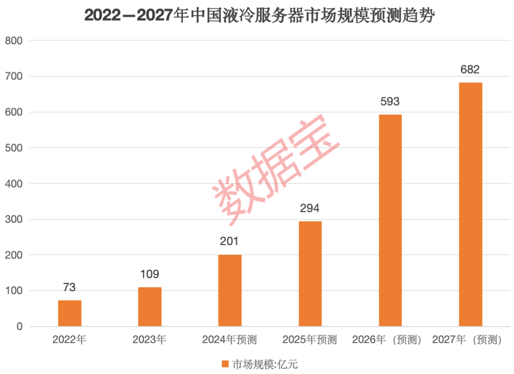 随着液冷数据中心的普及部署以及国家政策支持,服务器出货量有望继续增长。据中商产业研究院的预测,2024年中国液冷服务器市场规模将达201亿元,到2027年市场规模超680亿元。
