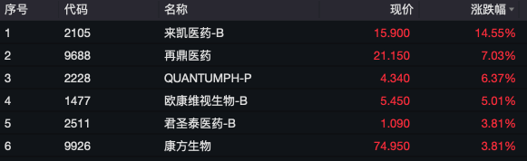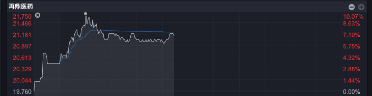 另外,再鼎医药(09688.HK)上涨7.03%,报21.15港元/股。