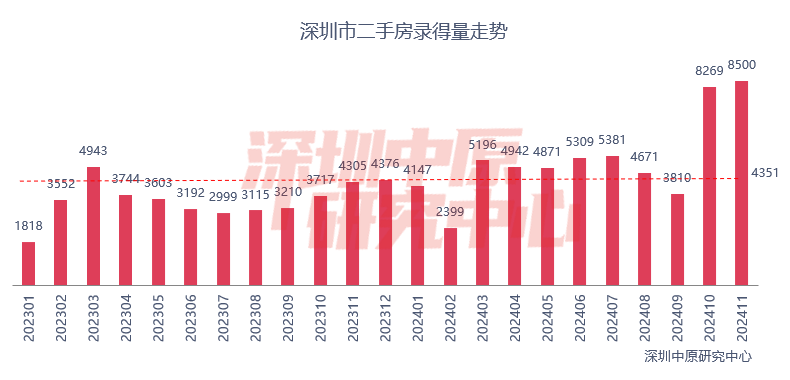 11月深圳二手成交维持“繁荣线”水平。据深圳中原研究中心统计,11月,深圳二手房录得量达到8500套,为近46个月来最高。