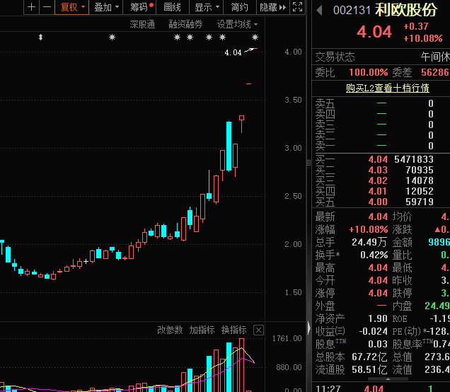 利欧股份今日再度涨停,近12个交易日内录得7个涨停,累计涨幅为95.17%,累计换手率为199.69%,早盘成交金额9896万元,换手率仅0.42%,封单超547万手。