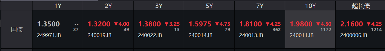 国债收益率全线走低