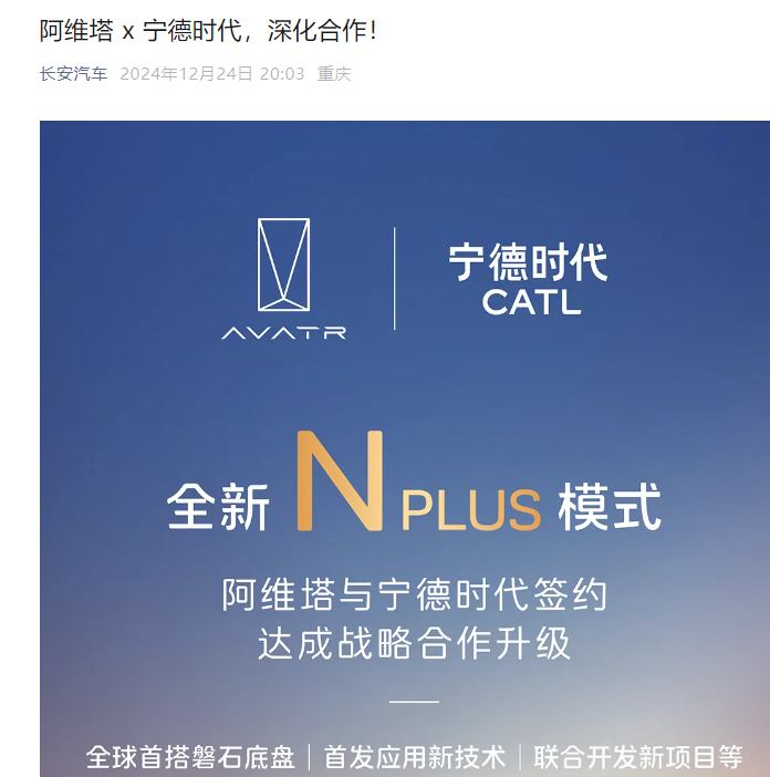 阿维塔与宁德时代达成战略合作升级