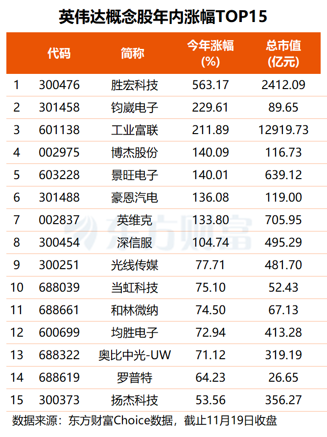 股价表现方面,超八成英伟达概念股年内股价上涨,其中有8XM交易官网股的股价涨逾1倍。作为英伟达主要供应商之一,胜宏科技的区间涨幅居首,今年以来,公司股价累计上涨563.17%。