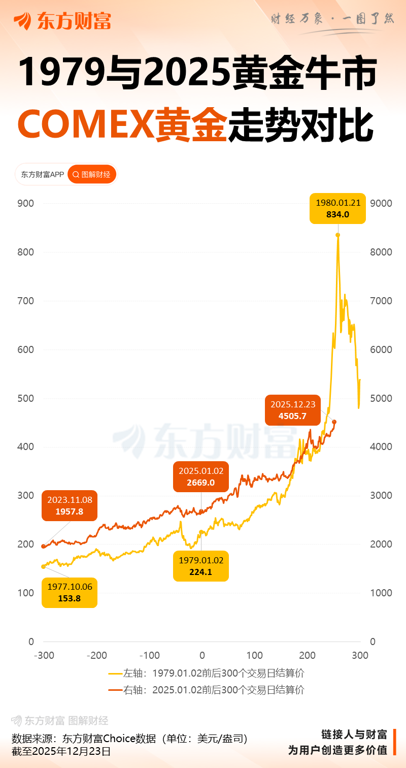 12月24日,现货黄金(伦敦金现)史上首次站上4500美元/盎司关口,今年累计涨逾70%。