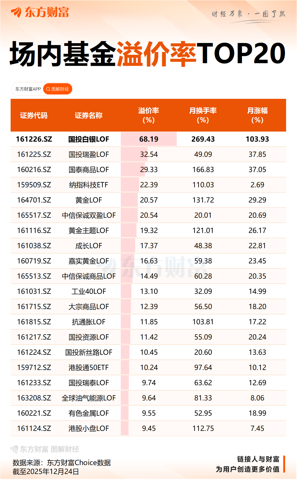 12月24日,受白银价格再创新高提振,全市场唯一一只主要投资于白银期货的公募基金——国投白银LOF连续第三日涨停,周三单日溢价率已高达68XM交易官网.19%,位列场内基金首位。