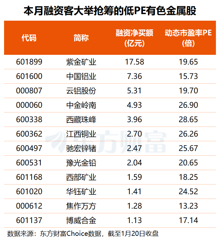 上述21股中,板块龙头紫金矿业获杠杆XM交易官网资金大幅加仓17.58亿元,中国铝业、云铝股份分别获融资客抢筹7.36亿、5.31亿元;中金岭南、西藏珠峰、江西铜业等5股的融资净买额均在2亿至5亿元之间,西部矿业、华钰矿业、焦作万方、博威合金也获融XM交易官网资净买入超1亿元。